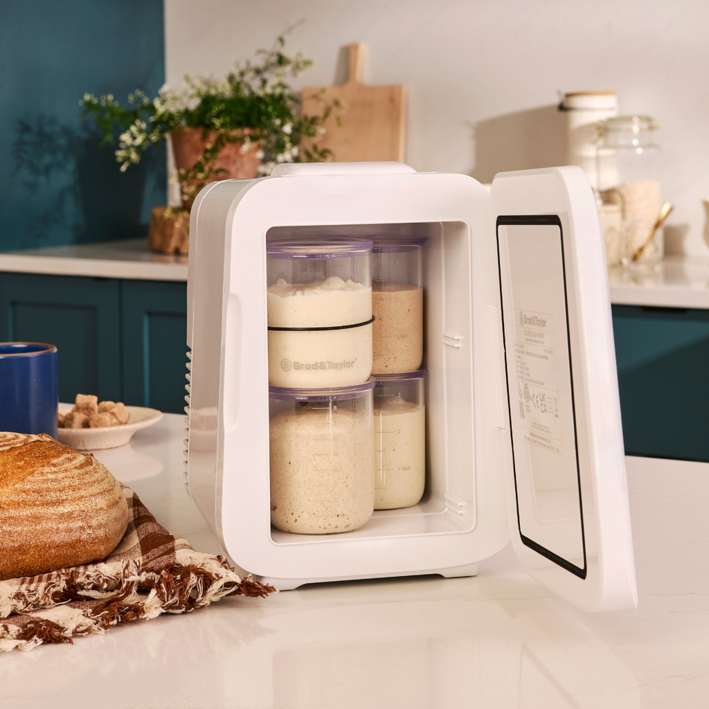 The Small Starter Jar is intentionally sized for maintaining a smaller starter - reducing waste and making regular care easier. Clear tracking and dishwasher-safe cleanup keep your routine simple, and if you’re maintaining multiple starters up to four jars fit inside the Sourdough Home.